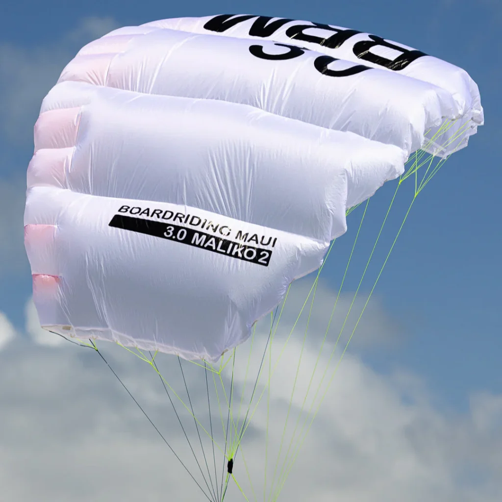 ダブルスキンのパラウイング。飛行性能を最大限に引き出すようデザインされ、特に強風域・オーバーパワーでのアップウインド効率と快適性が高いのが特徴。シングルスキンより大きくなりますが、収納・展開も行えます。